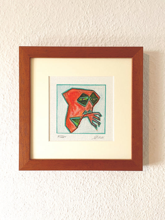 Diese kleinen Kunstwerke auf Papier sind originale Malereien, die einzigartig und nur einmal verfügbar sind. Jedes Kunstwerk ist handsigniert, gerahmt und wird mit einem Echtheitszertifikat geliefert.